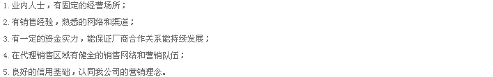 3.在約定的條件下,為您提供優(yōu)質(zhì)的售后服務(wù),保證在代理區(qū)域內(nèi)品牌經(jīng)營(yíng)權(quán);